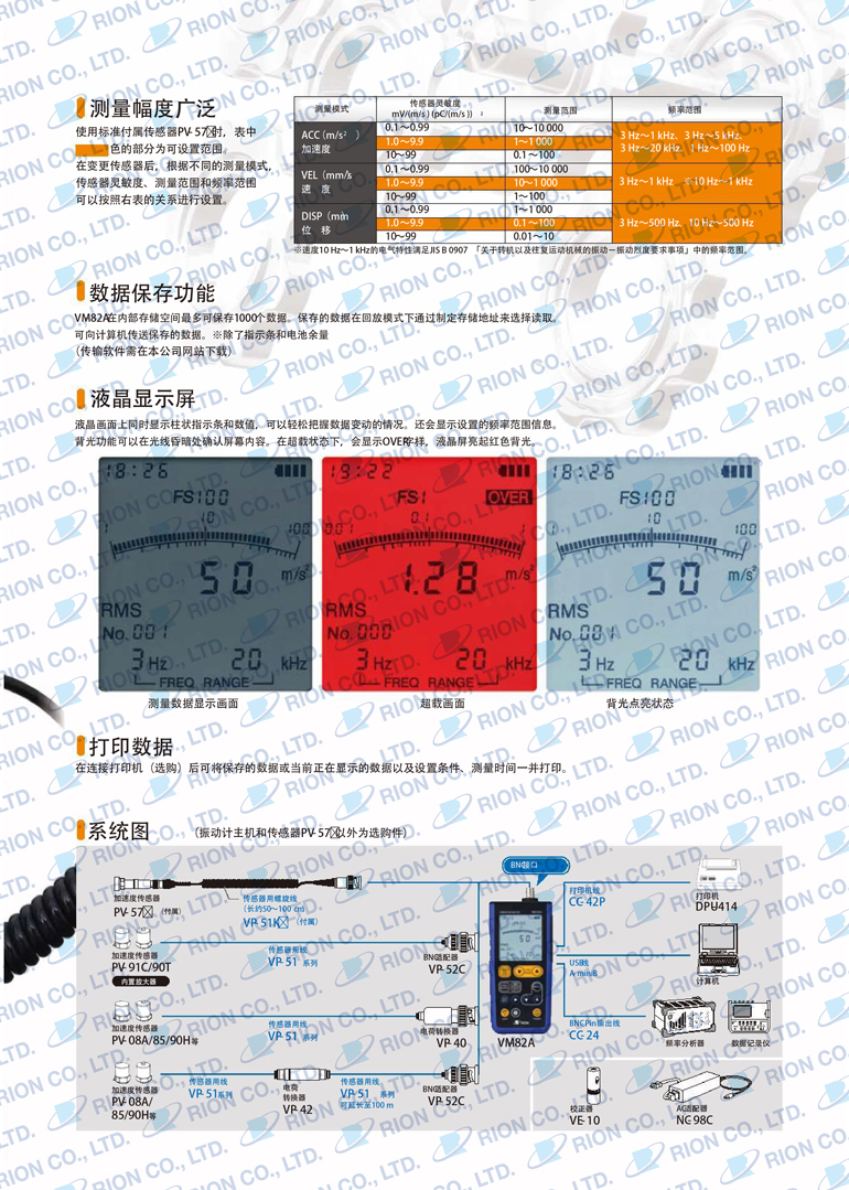| 傳感器PV-57I以及傳感器靈敏度 | 1.0~9.9 mV/m/s2 | ||||