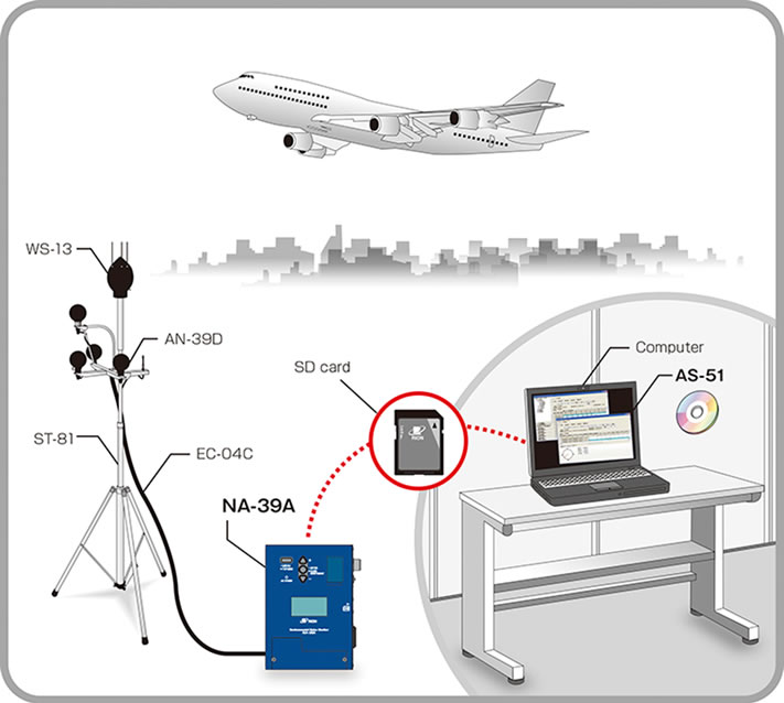 環境噪聲監測系統NA-39A作為專用監測設備,可同時監測機場周圍的飛行噪聲和地面噪聲。 在該系統中,可自動檢測噪聲事件以識別噪聲是否由飛機引起,并能將機場中產生例如飛機的滑行或APU等相對時間較長的噪聲(地面噪聲)單獨檢測、識別為“準穩態噪聲”。 數據可以保存至SD卡,并且可以使用通信線路隨時監控。 數據處理使用飛機噪聲管理軟件AS-51。 該軟件可以處理準穩態噪聲。對應規格 / 法令 / 標準 ●日本與飛機噪音有關的環境標準 配置清單