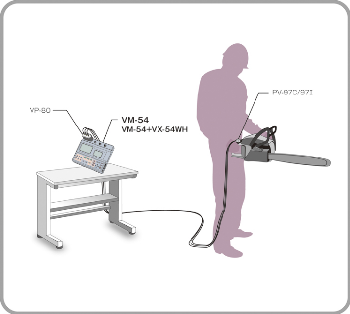 三方向加速度傳感器可以選擇 PV-97C 和 PV-97I。 通過手臂振動程序卡 VM-54WH 附帶的三通道振動輸入前置放大器連接。 手臂振動測量卡VX-54WH具有ISO 5349-1和ISO B 7761-1中規定的頻率加權特性Wh。 也可以測量三軸復合值。 三軸振動測量儀VM-54還可以通過添加可選的FFT分析卡VX-54FT來執行FFT分析。 此外,由于配備了三個通道的交流輸出,因此可以連接到數據記錄儀和分析器。