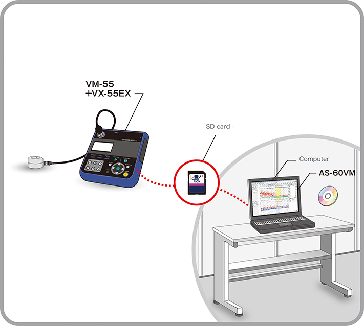 基本的測量系統。測量使用振動等級計VM-55,記錄使用等級記錄儀LR-07。