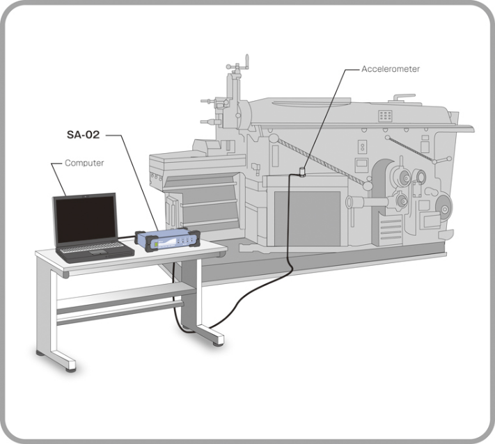 可以使用便攜式測量分析系統(FFT分析程序)SA-A1和帶內置放大器的加速度傳感器進行振動分析。
