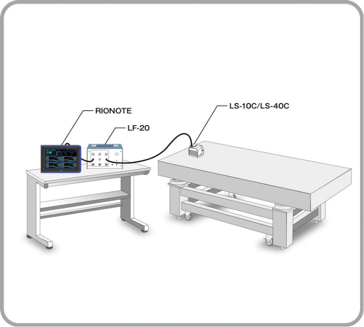 伺服式加速度傳感器 LS-10C/LS-40C 可以測量從DC到100Hz的低頻范圍內的振動。LF-20可為多達三個伺服式加速度傳感器供電,并將信號輸出為電壓。輸出信號連接到FFT分析儀進行分析和記錄。