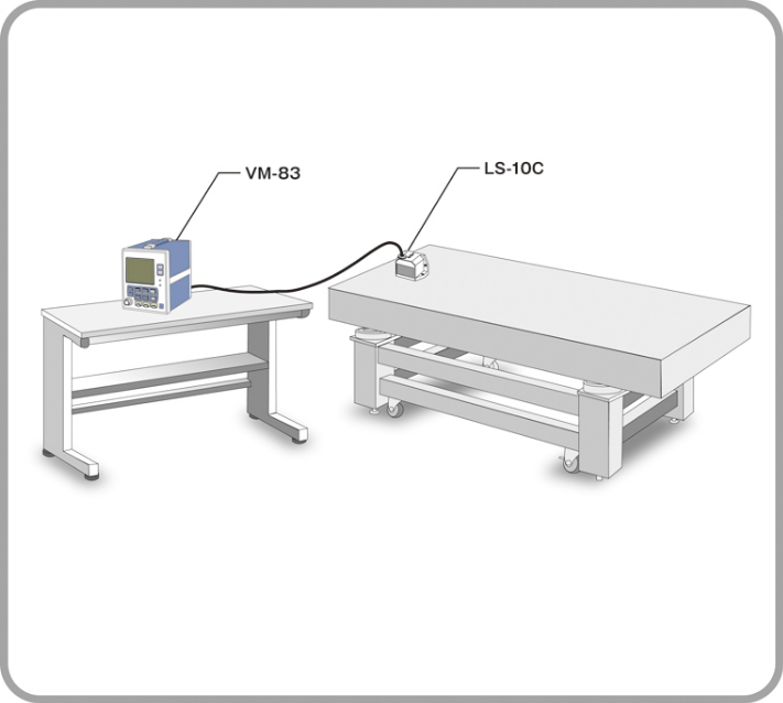 通用振動測量儀 VM-83 可以直接連接 LS-10C。振動測量儀可以用來顯示有效值或等效峰值等。此場合下測量范圍是 0.1 Hz 至 100 Hz。
