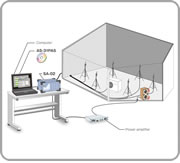 聲強測量系統可以通過精確測量網格中設置的多個測量點處的聲強,并在完成所有點的測量后繪制等高線圖等來達到將噪聲可視化的效果。但是完成測量之前無法繪制等高線圖。另一方面,音源探測系統可實時以圖形顯示聲音的到來方向。由此可知測量時聲音的到來方向。